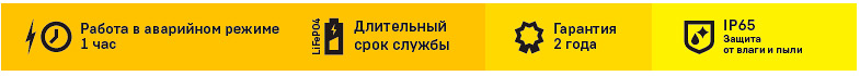 БАП питает драйвер светильника постоянным током с напряжением 220 В. В аварийном режиме каждый подключенный светильник выдает до 100% светового потока в течение 1 часа.