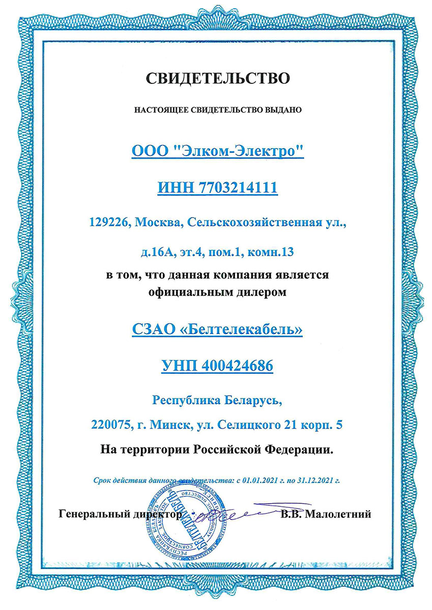 «Элком-Электро» — официальный дилер СЗАО «Белтелекабель».