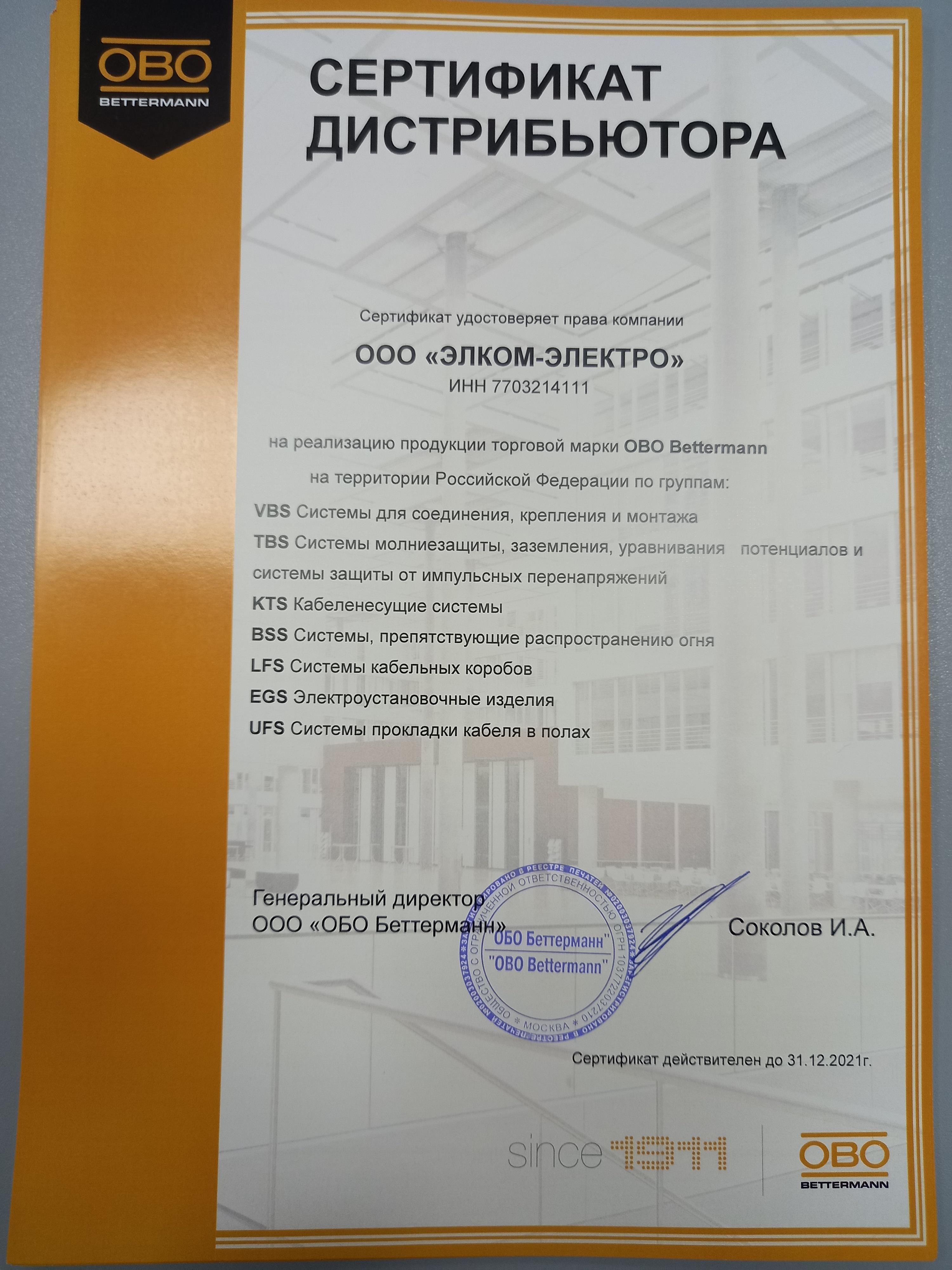 Компания «Элком-Электро» является официальным дистрибьютором ООО «ОБО Беттерманн».