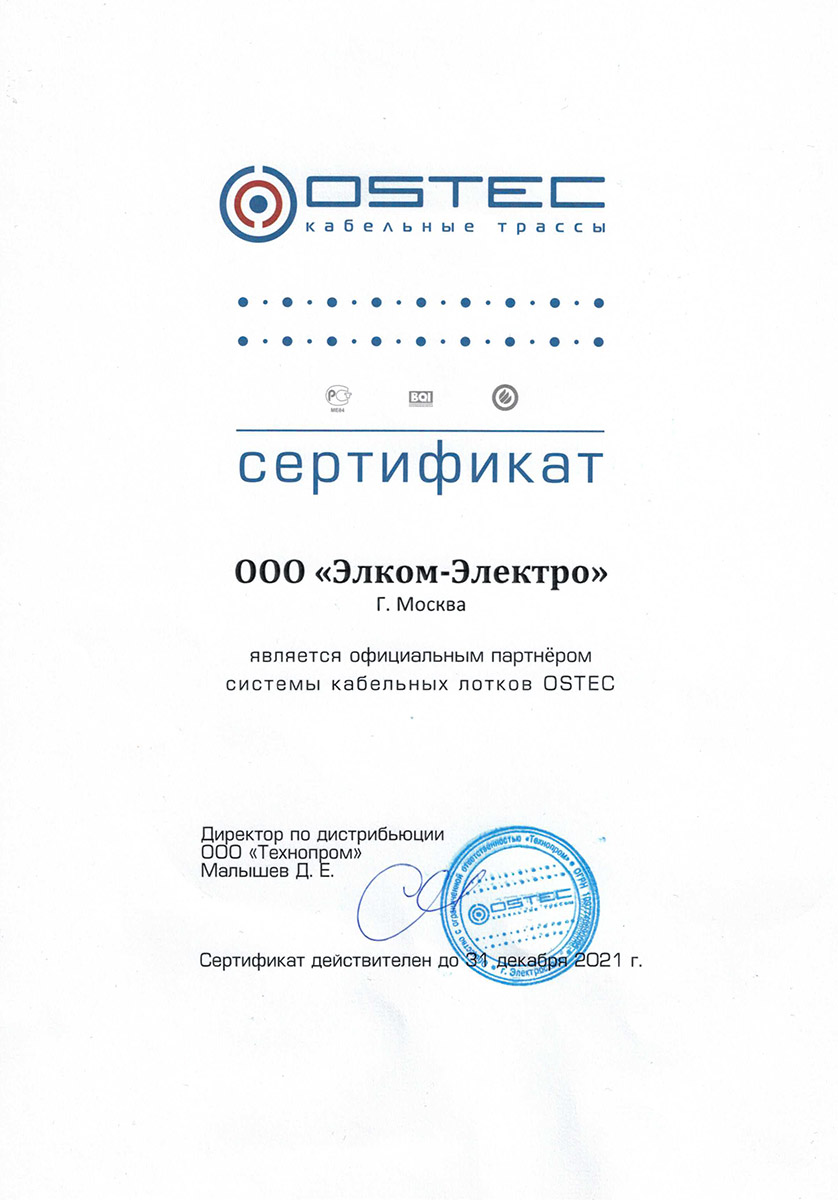 Компания «Элком-Электро» — официальный дистрибьютор «Остек», отечественного производителя кабеленесущих систем.