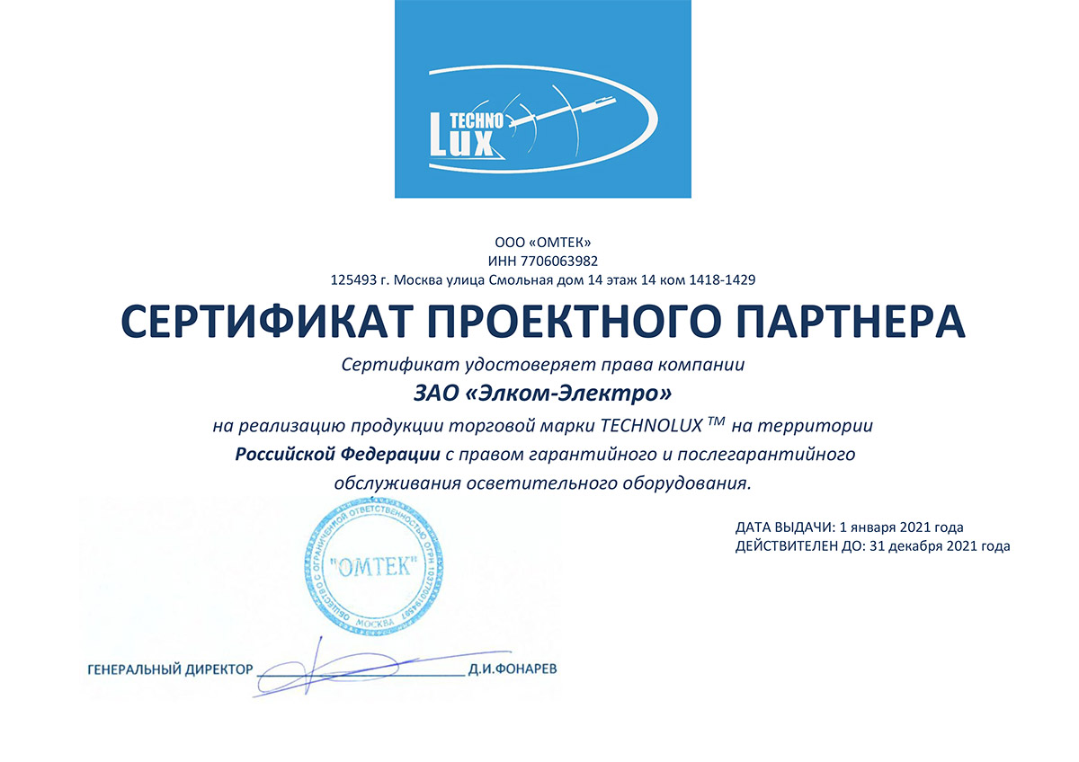 Компания «Элком-Электро» — официальный дистрибьютор продукции торговой марки TechnoLux.