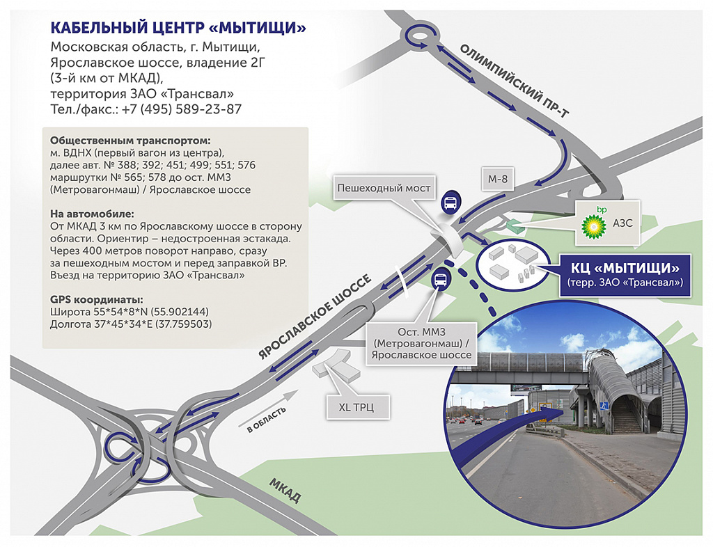 141009, МО, г. Мытищи, Ярославское ш., вл. 2г, территория ЗАО «Трансвал» (3-й км от МКАД)